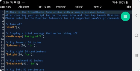 DroneBlocks Code is for advanced users that have moved beyond block coding with DroneBlocks. With "Code" you can now program your Tello and Tello EDU using JavaScript and more advanced programming techniques.